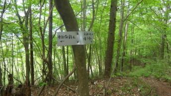 13:47〜14:00 東御荷鉾山山頂(1246m)(下山は山頂北側の石仏の裏から) 14:08 右へ(直進する道があるが行き止まり) |