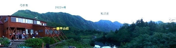 9:00〜9:10 休み 9:50〜10:10 イタドリヶ原の上部 10:33 シシウドヶ原(2090m) 10:50〜11:00 休み 11:33着 鏡平山荘(2300m)(湯、茶、水、全て無料) |