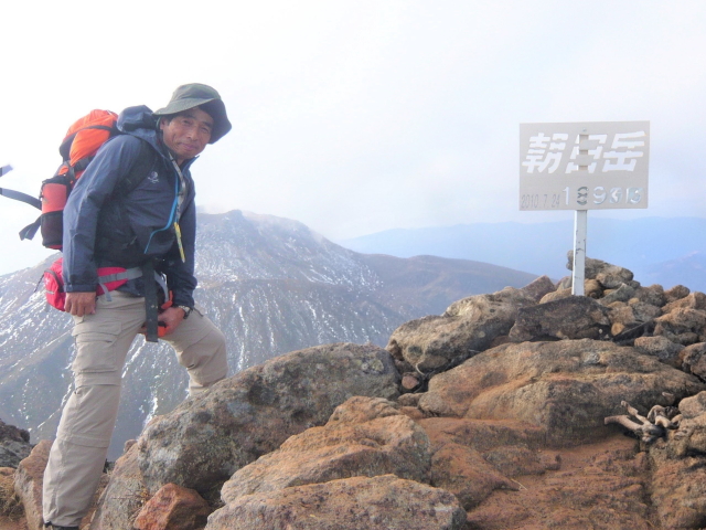 8:24〜8:27 朝日岳山頂(1896m) 三本槍岳の山頂部、旭岳が見えてきた。 8:36 朝日岳分岐に戻る。(朝日岳山頂への往復は約20分でした。) |