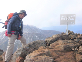 10:51 北温泉分岐 11:38 朝日岳分岐 休み 5分 三島さんの登山靴の靴底が剥がれてしまった為、テーピングテープで応急修理をした。 12:00〜12:05 峰ノ茶屋跡 登山靴を損傷してしまった三島さんは茶臼岳は断念、小林さんと私の二人で茶臼岳を目指した。山腹の数箇所でガスを排出している為、時々強い硫黄臭が流れてきている。 12:34〜12:50 茶臼岳 お鉢を半周して山頂に到着。 |