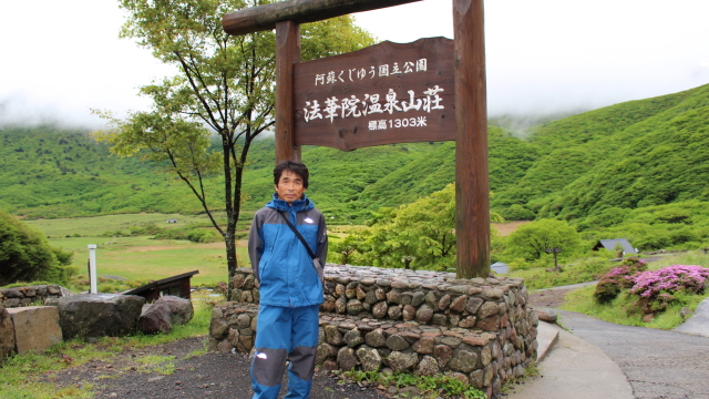 牧ノ戸峠からは九重IC行きの定期バス(¥300)に乗り、長者原駐車場へ移動、駐車場からはレンタカーで泉水キャンプ村(露天の温泉付き)に移動してテント泊しました。 |