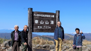 2017年10月26日(木) (晴れ) with KOさん、SOさん、KAさん、SHIさん 9月上旬に予定していましたが、雨で延期し今日の山行になりました。 朝から雲一つない好天に恵まれ、360度絶景と、草紅葉そして始まりかけた木々の紅葉を堪能してきました。 アクセス 4:15発 自宅 → SOさん → SHIさん → KOさん → 永福IC(首都高速、中央道) → 談合坂SA(朝食) → 諏訪IC(20号、ビーナスライン) → 9:30着 車山肩駐車場(無料) コースタイム (車山肩駐車場 → 車山 → 蝶々深山 → 物見岩 → 奥霧の小屋 → 旧御射山 → 車山肩駐車場) 9:42発 車山肩駐車場 → (10:32~10:57)車山山頂(1925m) → 11:20 車山乗越 → (11:45~12:20)蝶々深山(1836m)(昼食) → (12:46~12:50)物見岩(1792m) → (13:35~13:45)奥霧の小屋 → 14:00 御射山遺跡 → 沢渡 → 15:02着 肩駐車場 登山終了 【所要時間 5時間20分】 【歩行時間 4時間6分】 帰路 14:27発 肩駐車場 → 白樺湖温泉すずらんの湯(茅野市)(入浴¥700) → 諏訪南IC(中央道) → 八ヶ岳PA(夕食) → 永福IC → 21:00着 自宅 登山口の車山肩までは快適なドライブでした。 |