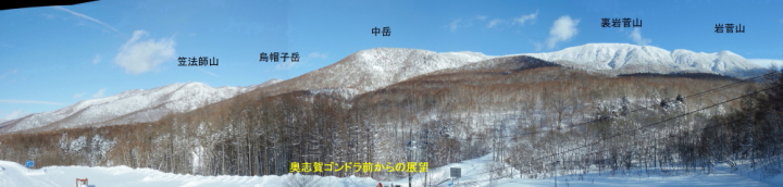 14:40 奥志賀ゴンドラ乗り場前から望む岩菅山連山 |