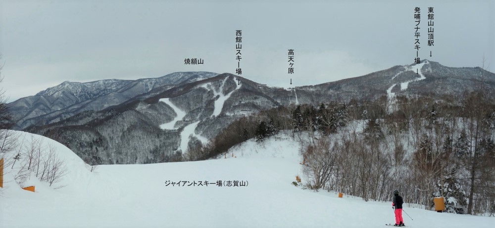 昼食後は、ジャイアント、ブナ平 を滑ってから西館山、高天ヶ原、タンネの森、一ノ瀬、焼額、奥志賀ダウンヒルコースを経て16時にはホテルに帰りました。 |