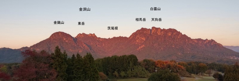 ![]() 妙義カントリークラブから望むモルゲンロートの妙義山 |